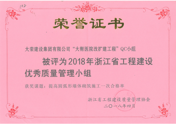 大榭醫(yī)院改擴(kuò)建工程,地處寧波大榭開發(fā)區(qū),總建筑面積17009.44平方米,框架結(jié)構(gòu),地上最高層5層,建筑高度21.9米。該工程QC活動(dòng)小組成立于2017年5月15日,小組成員共8人,活動(dòng)時(shí)間為2017年5月16至2017年8月20日。本小組圍繞“提高圓弧形墻體砌筑施工一次合格率”這一課題展開活動(dòng),通過設(shè)定目標(biāo),對(duì)各方面原因?qū)訉臃治觯业揭?,并針?duì)要因制定相應(yīng)對(duì)策,最終實(shí)現(xiàn)活動(dòng)目標(biāo),產(chǎn)生一定的社會(huì)效益和經(jīng)濟(jì)效益。榮譽(yù)的取得,是對(duì)QC小組全體成員努力工作的肯定,同時(shí)也為企業(yè)樹立了品牌,贏得了信譽(yù)。