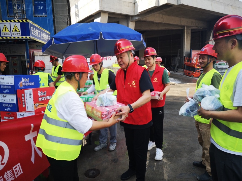 冬有三九,夏有三伏” 。為切實做好防暑降溫工作,保障一線務(wù)工人員的身心健康。7月27日,大榮建設(shè)集團有限公司組織開展高溫“送清涼”慰問活動,由集團生產(chǎn)副總朱本浩帶隊,聯(lián)合集團黨支部先后到鄞州人民醫(yī)院東院區(qū)建設(shè)項目、偉佳伊爾蘭項目、北侖云臺山項目、鄞州經(jīng)濟開發(fā)區(qū)南區(qū)基礎(chǔ)設(shè)施建設(shè)項目等在建項目工地,看望慰問高溫下堅守崗位的一線員工,為他們送上防暑降溫用品,有防暑藥品、礦泉水、飲料、方便面等。