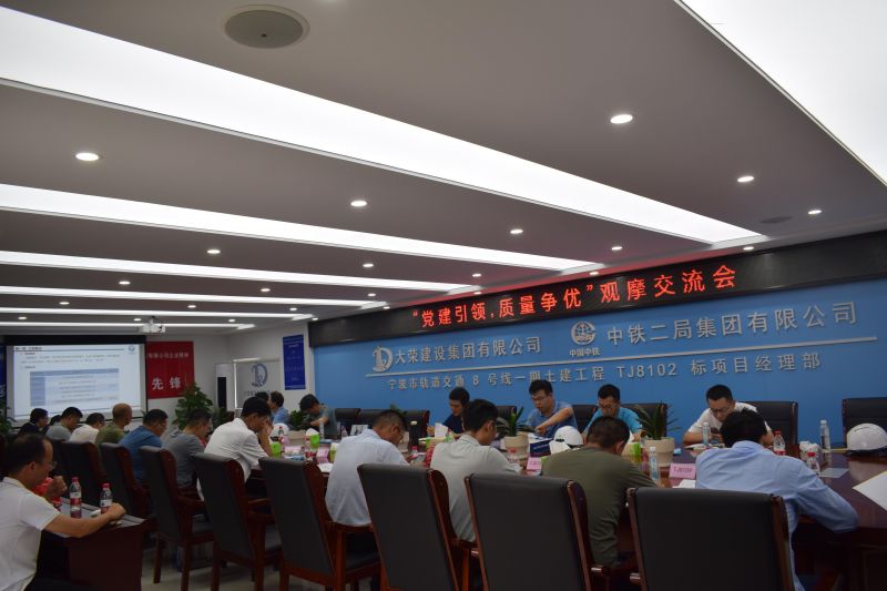 6月25日下午,寧波地鐵8號(hào)線一期土建TJ8102標(biāo)江北大道站順利開展了“黨建引領(lǐng),質(zhì)量爭(zhēng)優(yōu)”觀摩會(huì)。軌道交通建設(shè)分公司總經(jīng)理胡增輝,大榮建設(shè)集團(tuán)有限公司總經(jīng)理徐曉磊,中鐵二局城通分公司副總經(jīng)理劉東,8號(hào)線一期各標(biāo)段項(xiàng)目經(jīng)理、總監(jiān),大榮建設(shè)集團(tuán)有限公司直營(yíng)項(xiàng)目部等共56人參加。