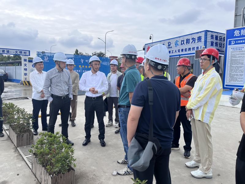 葉龍一行來到甬江軟件產(chǎn)業(yè)園區(qū)施工現(xiàn)場,聽取了項目施工進度、施工難點、安全質(zhì)量等方面匯報,在充分肯定施工單位的辛勤付出和努力之余,也指出局部細(xì)節(jié)上一些需要改進的地方,強調(diào)要狠抓挖土進度,排除萬難,合理安排資源投入,確保項目更快更好地完成。