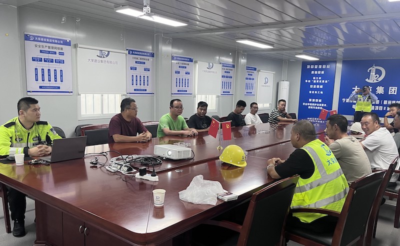 為加強(qiáng)項(xiàng)目工人出行安全意識(shí),提高守法意識(shí),確保工人在上、下班路途中的交通安全,創(chuàng)造和諧穩(wěn)定的交通環(huán)境。6月25日下午,寧波市公安局交通警察局鄞州大隊(duì)城區(qū)一中隊(duì)走進(jìn)甬江軟件產(chǎn)業(yè)園項(xiàng)目現(xiàn)場(chǎng),為項(xiàng)目部30余名管理人員及工人開展道路交通安全宣傳。