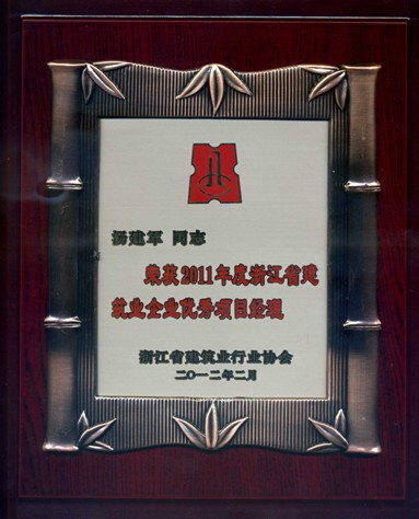 ![]() 2011年度浙江省先進(jìn)建筑業(yè)企業(yè)獎牌 ![]() 2011年度浙江省先進(jìn)建筑業(yè)企業(yè)榮譽證書 ![]() 2011年度浙江省建筑業(yè)優(yōu)秀項目經(jīng)理獎牌 |