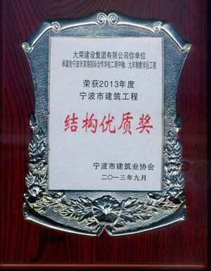 寧波市濱海國際合作學(xué)校二期中軸、九年制教學(xué)區(qū)工程是繼去年寧波市鄞州區(qū)銀行保險辦公大樓工程后我公司獲得的第二個“寧波市結(jié)構(gòu)優(yōu)質(zhì)獎”工程。 “寧波市建筑結(jié)構(gòu)優(yōu)質(zhì)獎”是寧波市建筑工程結(jié)構(gòu)質(zhì)量的最高榮譽獎,也是參評“寧波市甬江建設(shè)杯”錢江杯“的先決條件。此次的獲獎,也為該工程申報2013年寧波市甬江建設(shè)杯奠定了基礎(chǔ),更為來年申報“錢江杯”開了個好頭! 下圖為結(jié)構(gòu)優(yōu)質(zhì)獎獲獎證書。