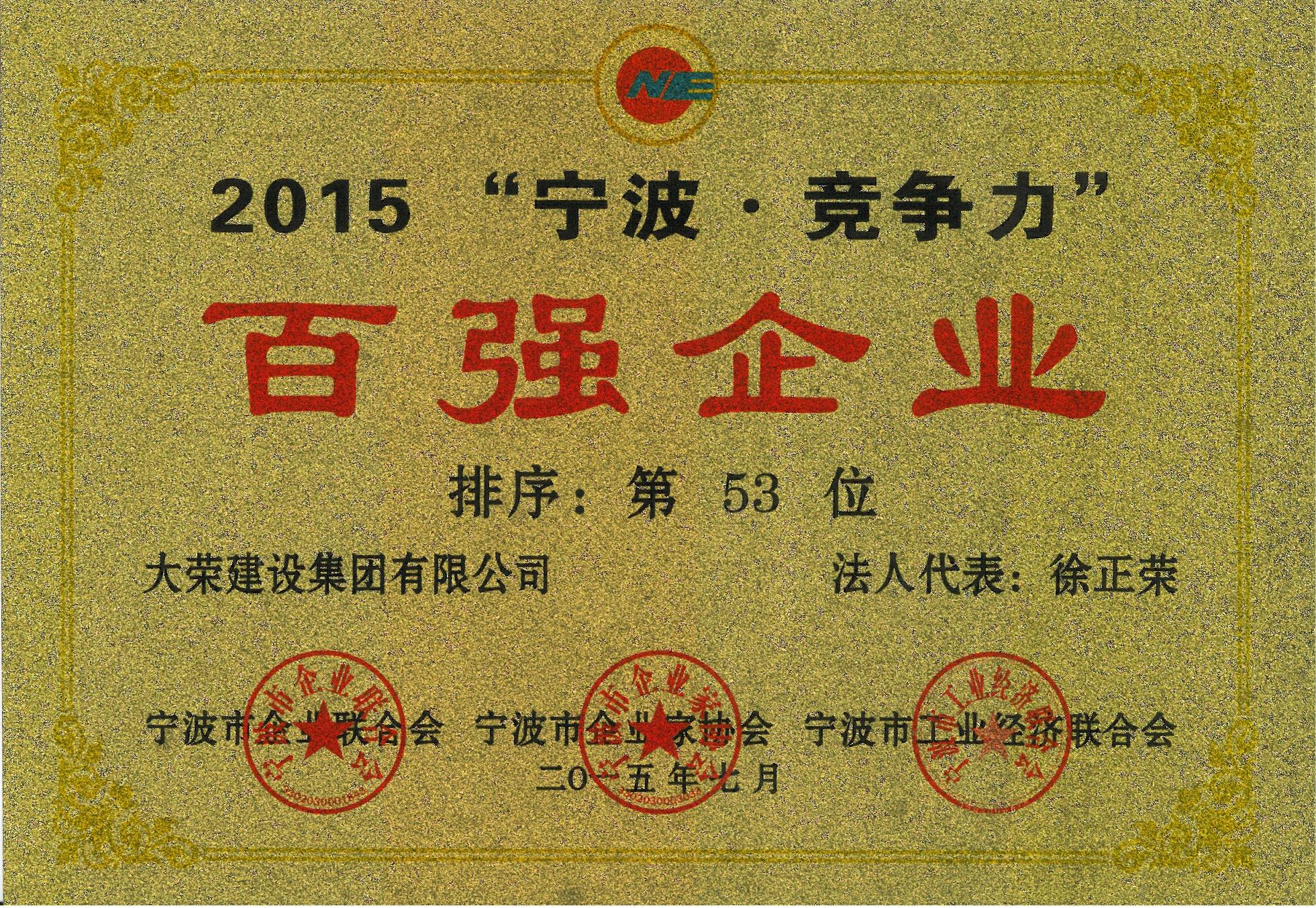日前,在寧波市企業(yè)聯(lián)合會、企業(yè)家協(xié)會和寧波市工業(yè)經濟聯(lián)合會召開的2015寧波市百強企業(yè)頒獎大會上,大榮建設集團有限公司成功入圍2015“寧波·競爭力”百強企業(yè)。