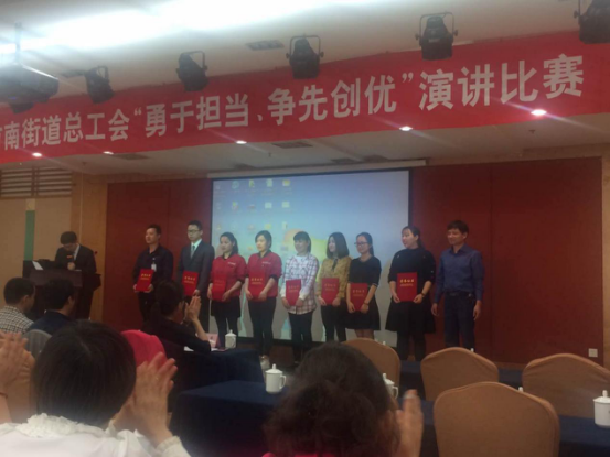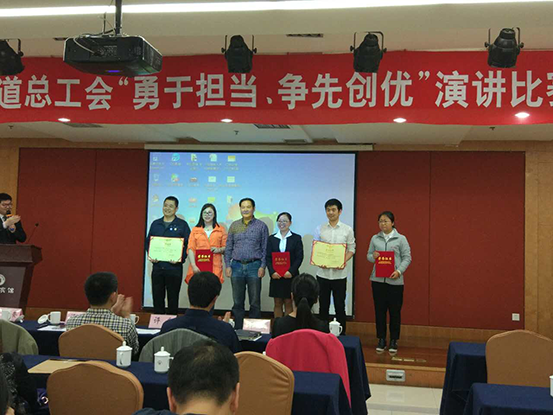 2017年4月17日下午,為進一步培育和踐行社會主義核心價值觀,全面提高職工道德素養(yǎng),大力弘揚“勇于擔(dān)當(dāng),爭先創(chuàng)優(yōu)”的勞動精神,首南街道總工會舉辦主題為“勇于擔(dān)當(dāng),爭先創(chuàng)優(yōu)”職工演講比賽。大榮公司員工毛晨、張柳雅和費陳三位同志參加了該比賽,其中毛晨榮獲三等獎、張柳雅和費陳榮獲優(yōu)勝獎,同時大榮建設(shè)集團有限公司榮獲組織優(yōu)勝獎。