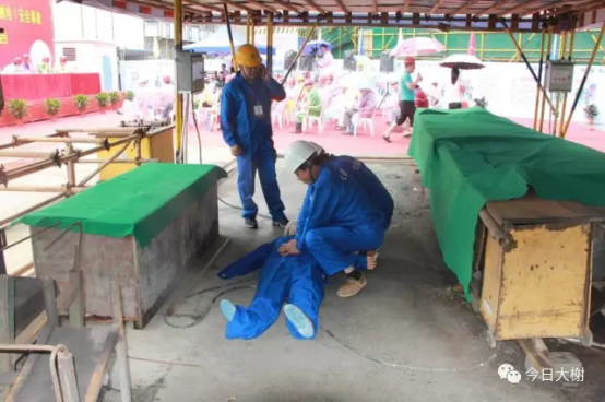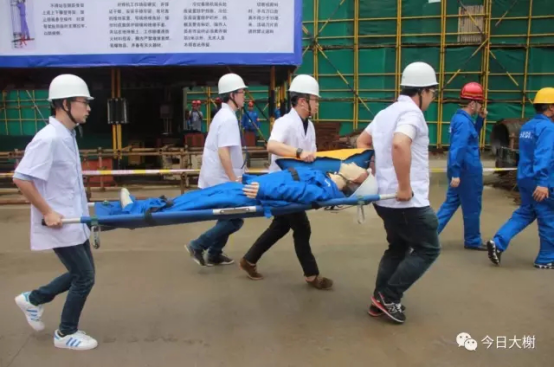 本次演練假設(shè)以大榮建設(shè)集團(tuán)有限公司承建的大榭醫(yī)院改擴(kuò)建工程發(fā)生一起1人觸電事故為背景。事故發(fā)生后,項(xiàng)目部立即啟動(dòng)應(yīng)急救援方案,切斷電源,開展自救,并組織施工人員撤離。同時(shí),救護(hù)人員現(xiàn)場(chǎng)施救,及時(shí)將觸電人員送往醫(yī)院。