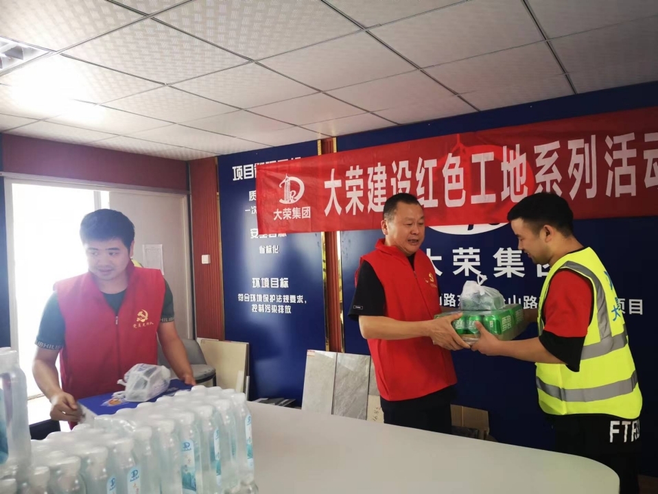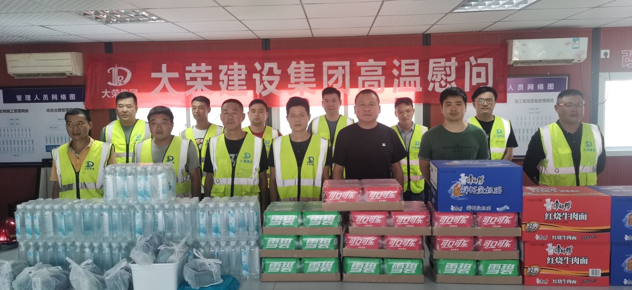 冬有三九,夏有三伏” 。為切實做好防暑降溫工作,保障一線務(wù)工人員的身心健康。7月27日,大榮建設(shè)集團有限公司組織開展高溫“送清涼”慰問活動,由集團生產(chǎn)副總朱本浩帶隊,聯(lián)合集團黨支部先后到鄞州人民醫(yī)院東院區(qū)建設(shè)項目、偉佳伊爾蘭項目、北侖云臺山項目、鄞州經(jīng)濟開發(fā)區(qū)南區(qū)基礎(chǔ)設(shè)施建設(shè)項目等在建項目工地,看望慰問高溫下堅守崗位的一線員工,為他們送上防暑降溫用品,有防暑藥品、礦泉水、飲料、方便面等。