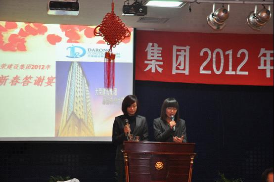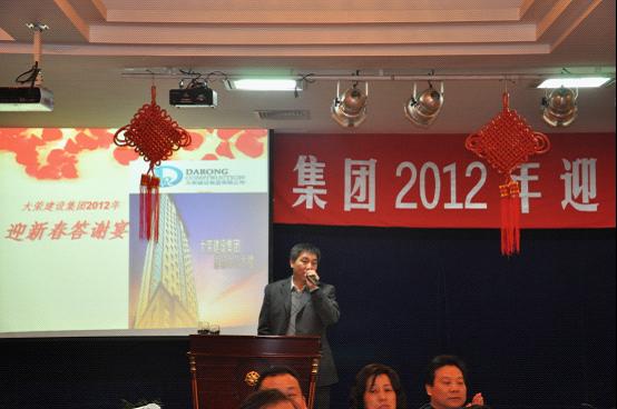 大榮建設(shè)集團2012年迎新春答謝宴會于1月19日在寧波市鄞州區(qū)銀苑大酒店隆重舉辦。集團公司全體管理人員及家屬參加了宴會,同時參加答謝宴會的還有繁榮置業(yè)、檢測、混凝土等子公司管理人員和家屬。